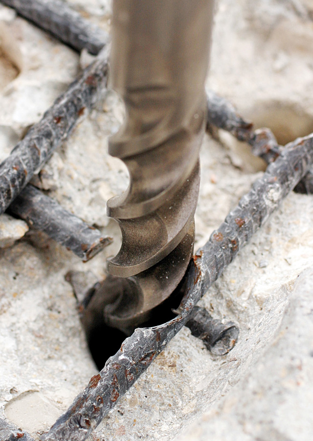 Для сверления идеально круглых отверстий в армированном бетоне (++++), бетоне (++++), камне (+++), граните (++), кирпиче (++) перфораторами sds-plus