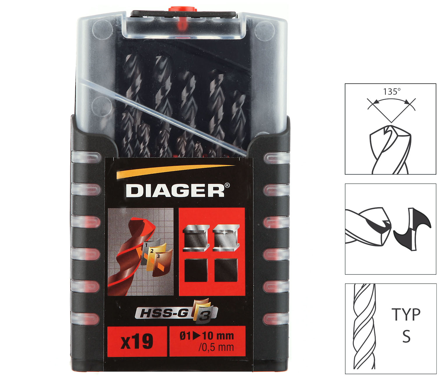 19 сверл по металлу HSS G3 TiAlN в пластиковом футляре